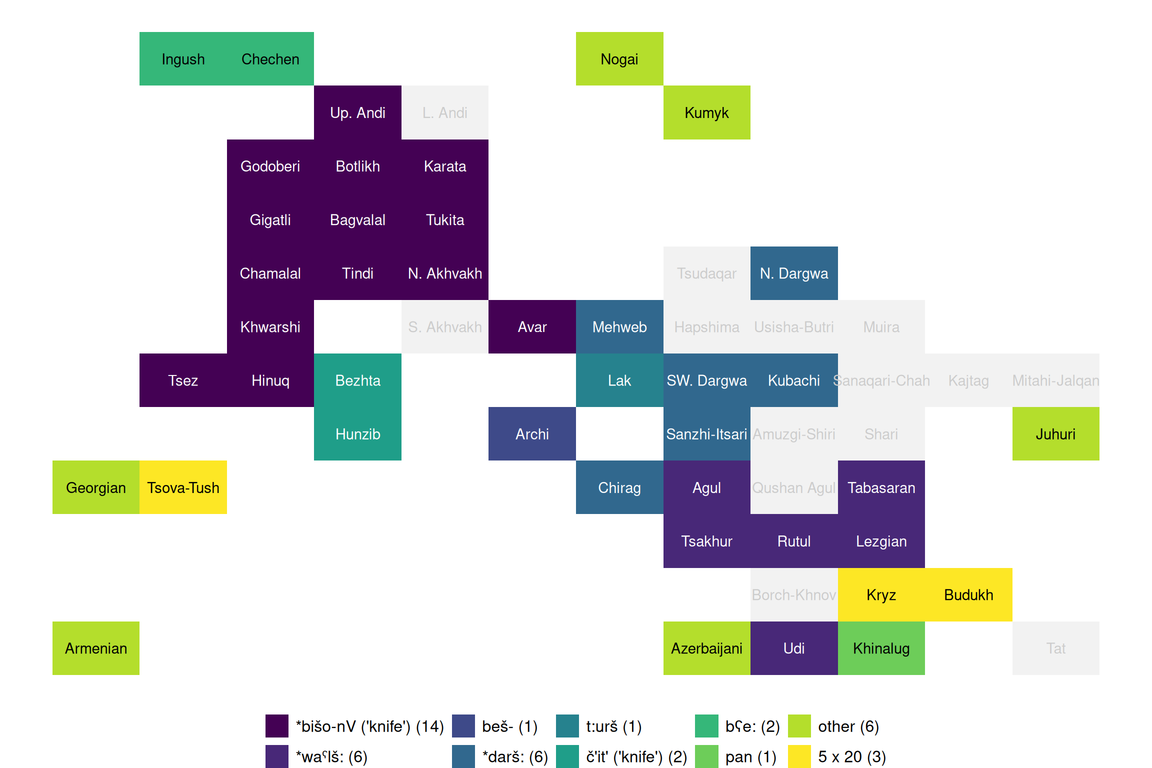 Melenchenko, Maksim (2022). “Root for ‘hundred’ (Maps & Data)”. In: Typological Atlas of the Languages of Daghestan (TALD), v 2.0.1. Ed. by George Moroz, Michael Daniel, Konstantin Filatov, Timur Maisak, Timofey Mukhin, Irina Politova, Elena Shvedova, Samira Verhees and Chiara Naccarato. Moscow: Linguistic Convergence Laboratory, HSE University. DOI: 10.5281/zenodo.6807070. https://lingconlab.ru/tald.